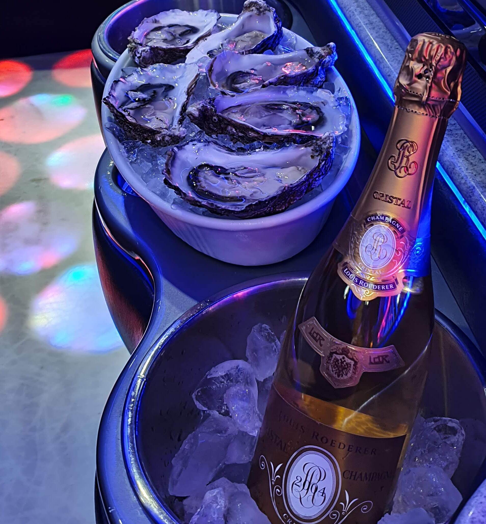 Su ordinazione è possibile allestire il bar con i migliori Champagne: Moet, Ruinart, Don Perignon, Krug, Cristal.